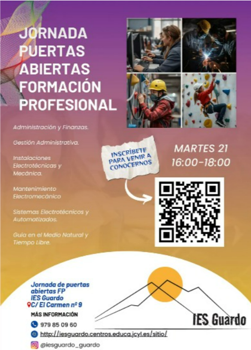 GUÍA EN EL MEDIO NATURAL Y TIEMPO LIBRE Os dejamos los trípticos de nuestra oferta educativa y un enlace al calendario de adminisón y matrícula |
